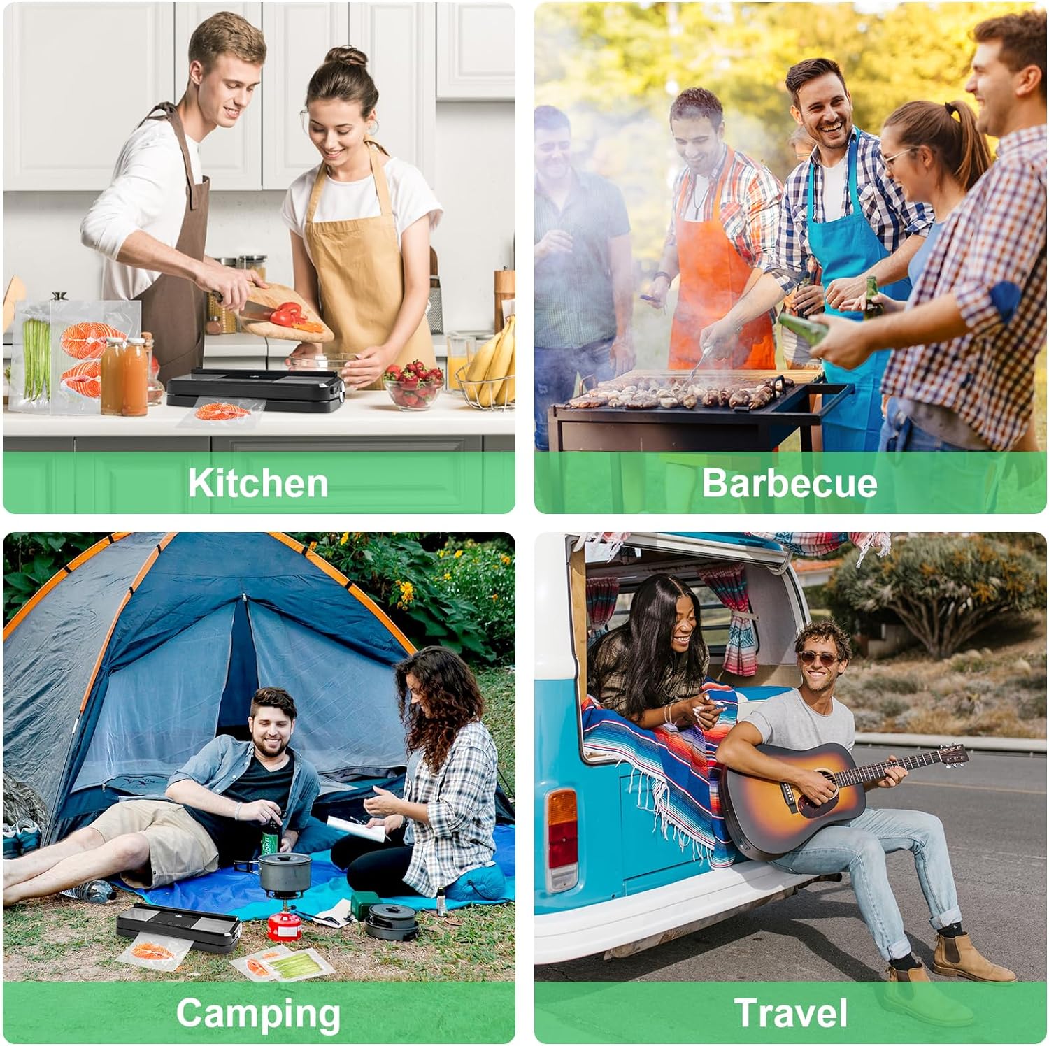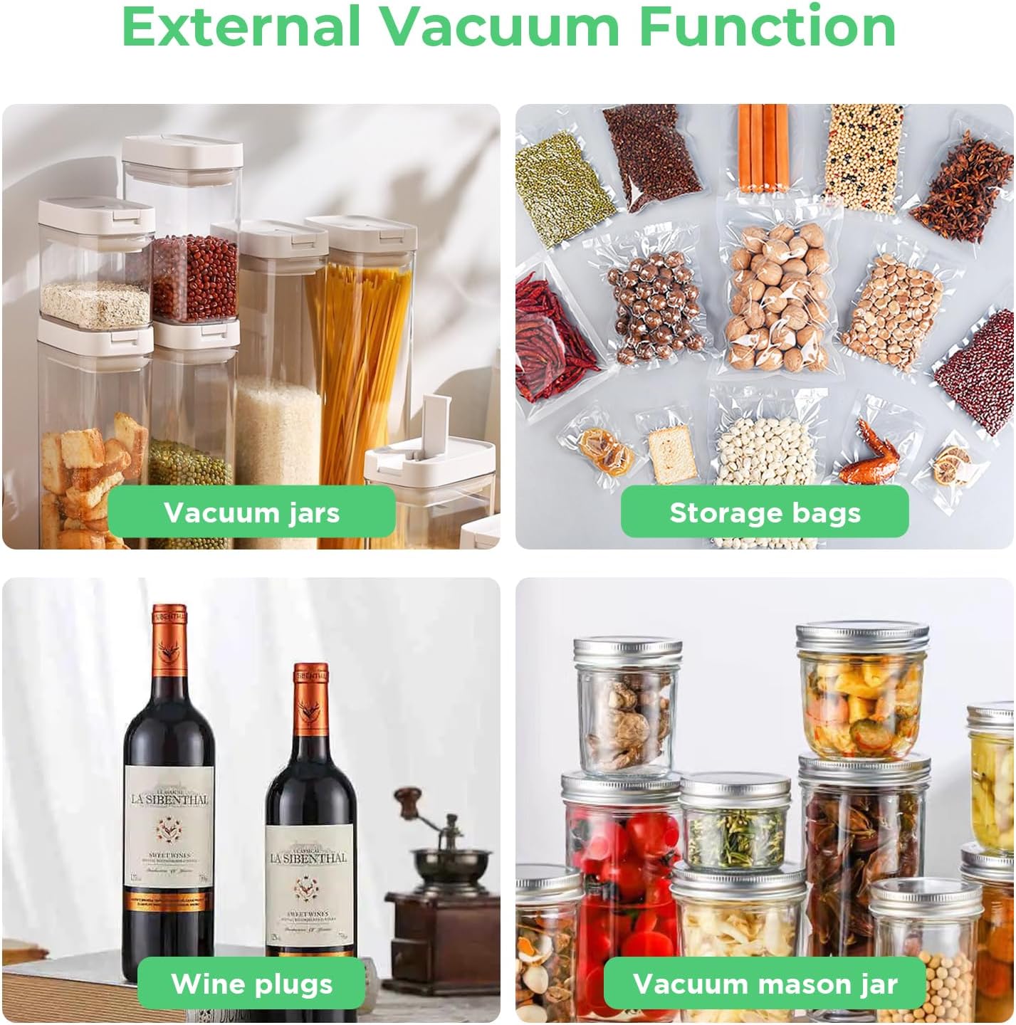 - šš š¢š§ š šššš®š®š¦ šššš„šš« šššš«ššš« šš¢š: Moist/Dry - Maximize freshness for different food. Only Seal - Quick seal only. Control - Manually vacuum. External VAC- for canisters and wine preservation. Cutter- Easily customize bag size. Roll Storage - Easy store bags. Mason Jar Starter Kit - No need for an extra electric Mason jar vacuum machine, this machine alone can achieve vacuum sealing of vacuum bags/Mason jars. Include 1 pack vacuum sealer roll, we recommend Etunsia vacuum bags, other bags may not ensure 100% fit.