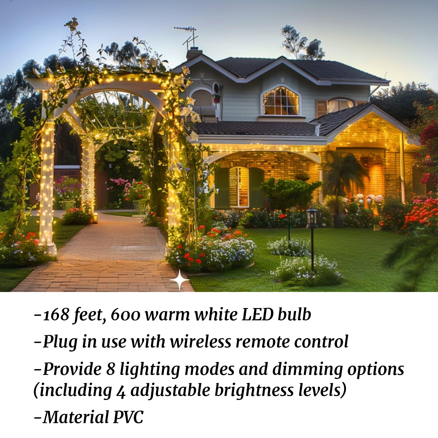 168FT Christmas Lights Outdoor 8 Modes Indoor String Lights for Outside Warm White