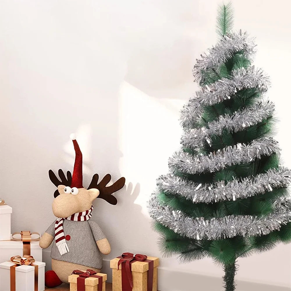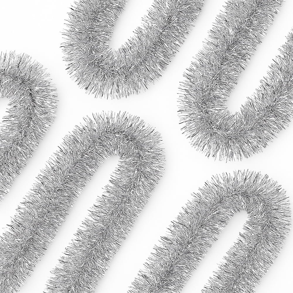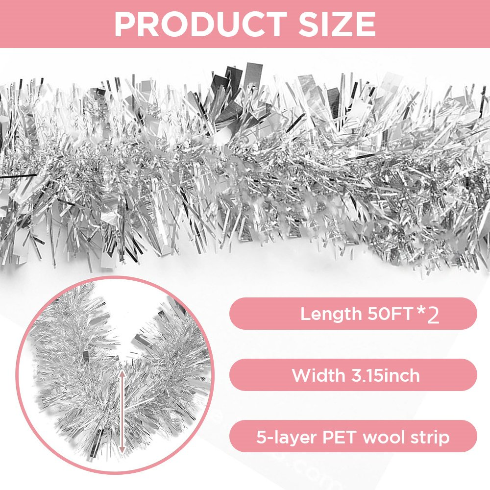 50FT*2 Silver Metallic Twist Shiny Garland for Christmas Tree Decorations, Xmas Hanging Decor for Indoor Outdoor Use
