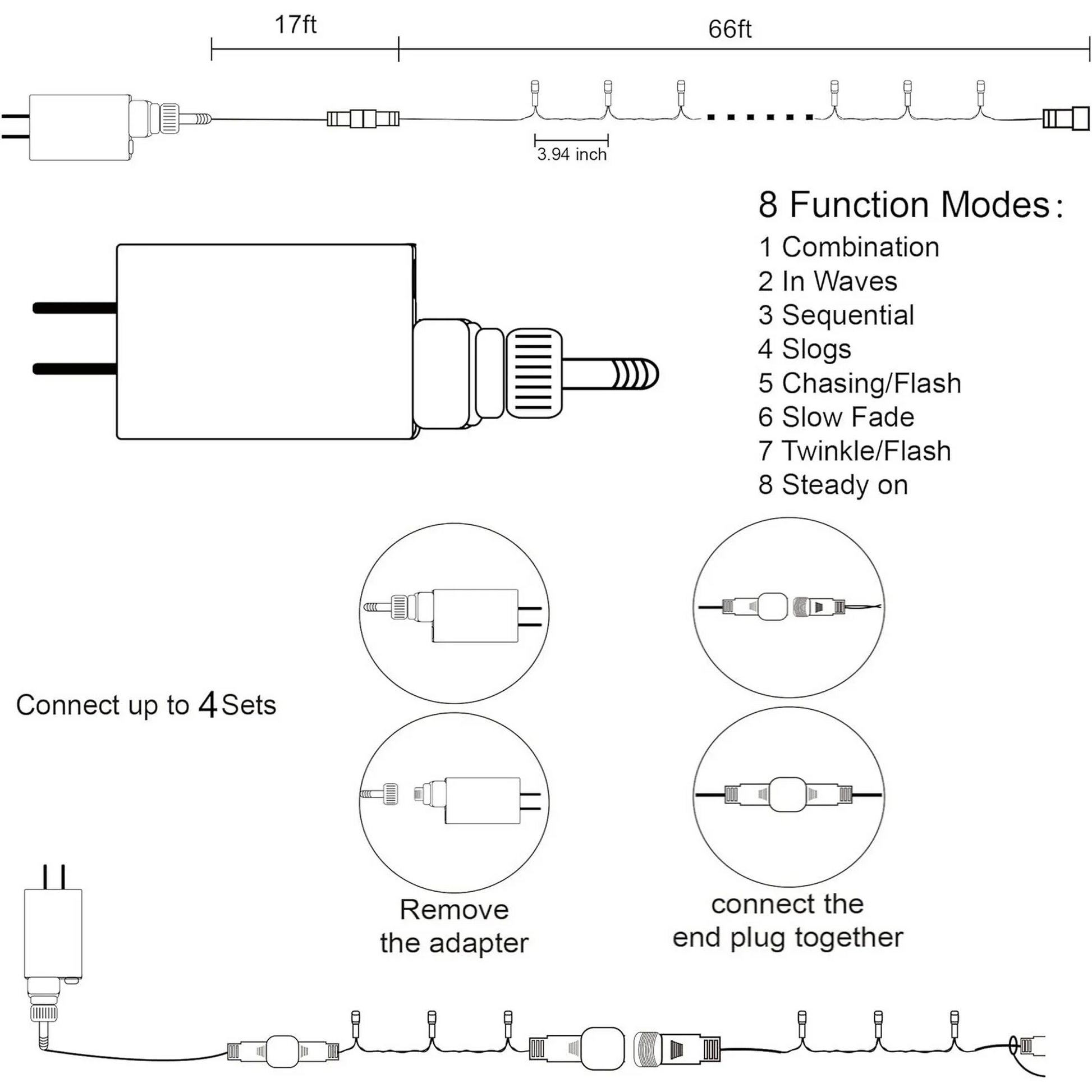 The 66FT Outdoor Indoor 200LED Christmas Lights warm white individual LED bulbs. Great for indoor and outdoor decorations. Christmas, party, Valentine's Day, wedding, home, window, bathroom, festival, Holiday, shows, restaurant, hotel, commercial building, shopping center etc. 29V low voltage green wire string lights, can keep at a low temperature state after lighting up for hours, ensure and maximize safety. Directly plug in and unplug it for power on and off. US standard outlet, voltage 120V. High bright and luminous intensity, good heat dissipation, low light decay, and create romantic life for you.