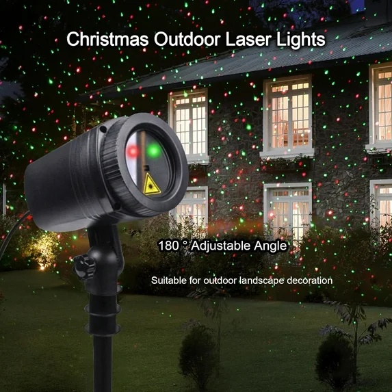 Want to see an unrivalled light show at christmas? Want the beautiful stars in the sky to twinkle on your home and patio? You should choose this red and green star laser projector lights from us. night is a mysterious and beautiful time, our landscape projector lights can help you enjoy the night better. Whether you are celebrating a party, having a wedding, decorating for a festival or just want to add atmosphere to a family gathering, our landscape projector lights can meet your needs.Includes: 1x Laser Projector | 1x Remote | 1x Ground Stake | 1x User Manual