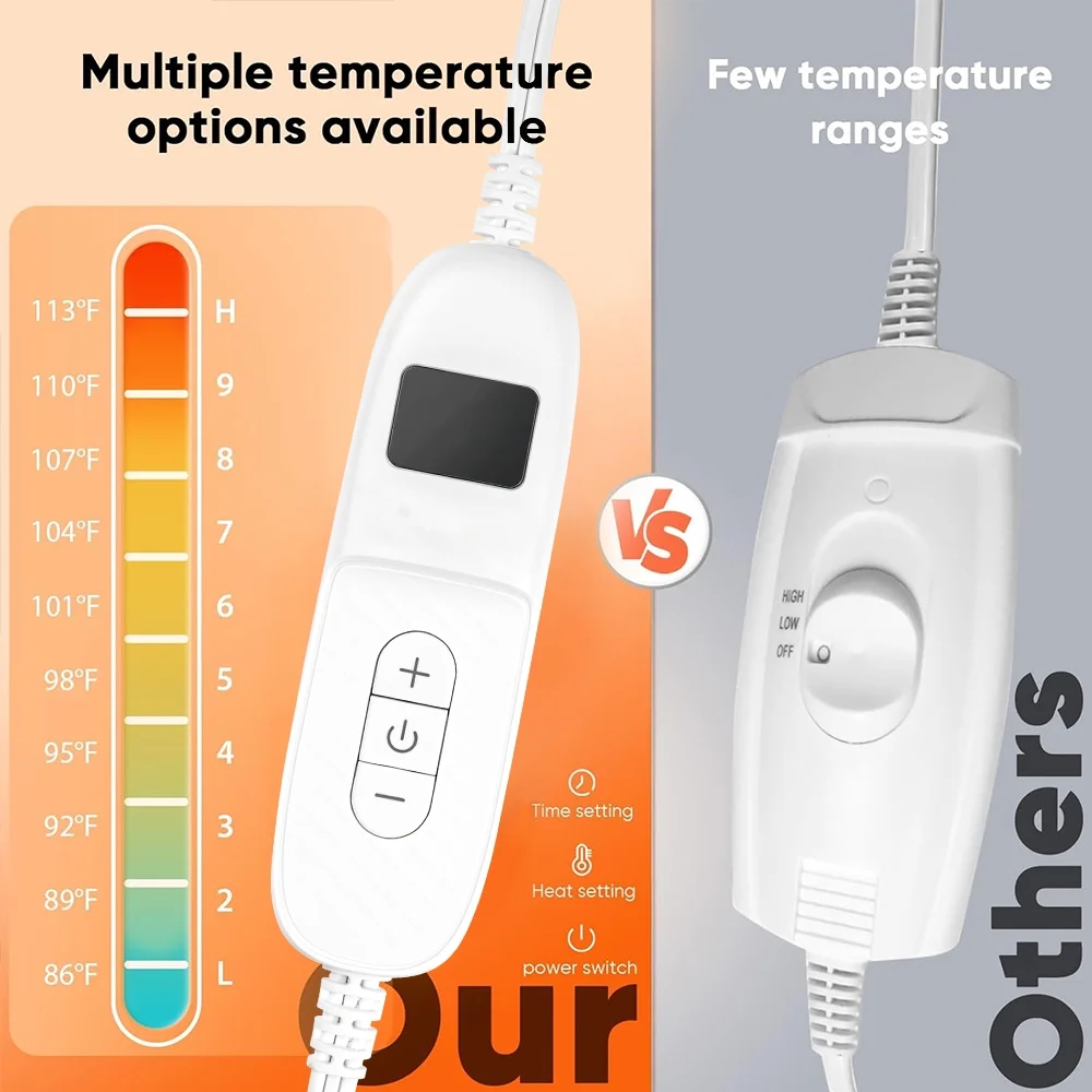12"x24" Electric Heating Pad with 10 Heat Settings – Experience fast, targeted relief from back pain, muscle cramps, and stiffness with this ultra-soft microplush heating pad. Heats up in seconds with 10 adjustable temperature levels and a 120-minute auto-shutoff for safe, worry-free use. The machine-washable design and extra-long 107-inch power cord offer comfort and convenience for treating neck, shoulder, abdominal, or leg discomfort. A thoughtful, practical gift for anyone seeking warmth and relaxation.